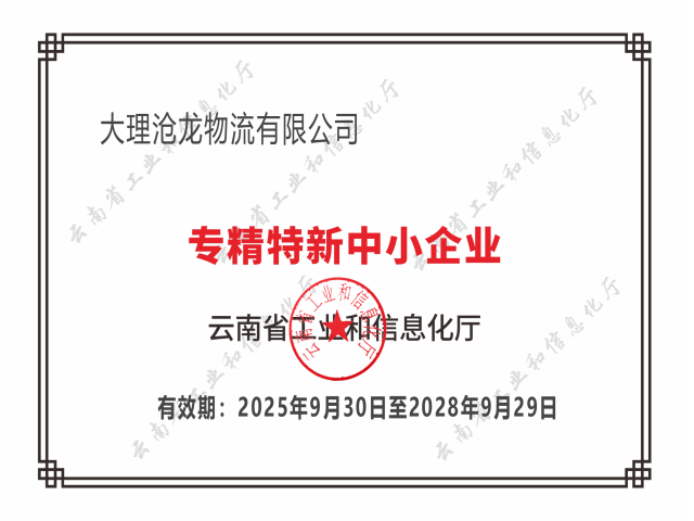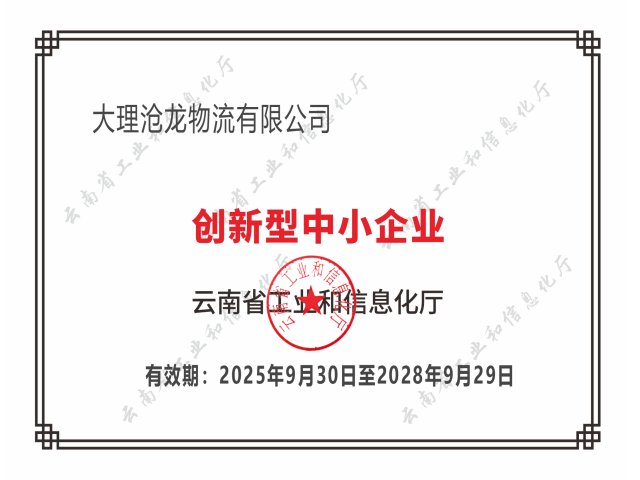 近日,云南省工业和信息化厅公布了2025年创新型中小企业、专精特新中小企业和2022年到期复核通过企业名单,大理沧龙物流有限公司凭借其在现代物流领域的卓越表现,顺利通过"创新型中小企业"复核,并成功申报2025年"专精特新中小企业"。